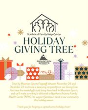 Celebrate the season of giving with us at Mountain Sports Flagstaff! Stop by between November 26 and December 23 to select a tag from our Giving Tree, each representing a local family in need through the Northern Arizona Family Health Center (NFHC).