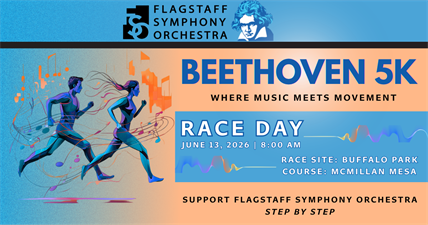 The annual Beethoven 5K is a run that celebrates classical music, nature, community, and the 76 years of joy and inspiration FSO has offered to all residents of Flagstaff and northern Arizona. Join us on June 13 for the Beethoven 5K and support Flagstaff Symphony Orchestra!