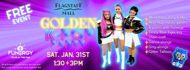 Join the fun at this Family-friendly K-pop infused party at Flagstaff Mall on Saturday, January 31st from 1:30pm to 3pm.Located in the Entertainment Area by JCPenney