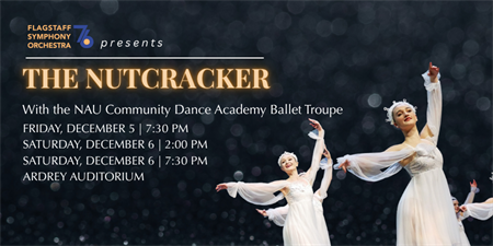 A beloved Flagstaff holiday tradition. Join us for a magical journey through Clara’s dreamscape in Tchaikovsky’s The Nutcracker, brought to life by the dancers of NAU’s Community Dance Academy and the full forces of Flagstaff Symphony Orchestra. The Lollipop Matinee is a shortened version suitable for families with young children!
